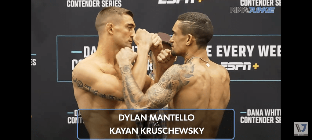 Kaynan Kruschewsky(14-1)(#14 Lightweight Brazil)(-250 moderate favorite) Vs Dylan Mantello(7-2)(#14 Lightweight US Northeast)(+200 moderate underdog)