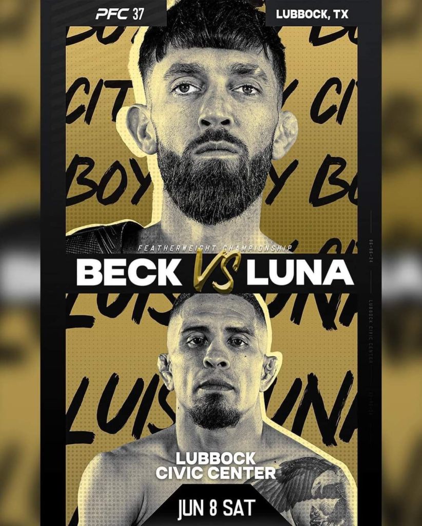 Coming up June 8th in Lubbock, Texas, newly crowned PFC 145 champion Chance Beck will face a gritty challenger in former LFA veteran Luis Luna in the main event of PFC 37. Back in March of this year former UFC and Bellator Vet Cody Pfister returned from retirement at PFC 34 to fight for the PFC Featherweight championship. His return was ruined and wrecked by a hurricane straight out of Kentucky, named Chance Beck, who snatched up the PFC Featherweight strap with a flawless performance that saw him put away Cody at 2:32 into Round 1 Via Arm bar. Chance moved to 10-7 as a pro and more importantly, stays perfect at Featherweight. That moved his record at the weight class to 9-0, once again proving that most if not all of his professional losses are a result of fighting above his natural weight class. I reached out to Chance and asked him if his previous title-winning performance went how he pictured it and if not how was it different than he expected. His response gives me a pretty good idea that he was expecting more of a war last time out.