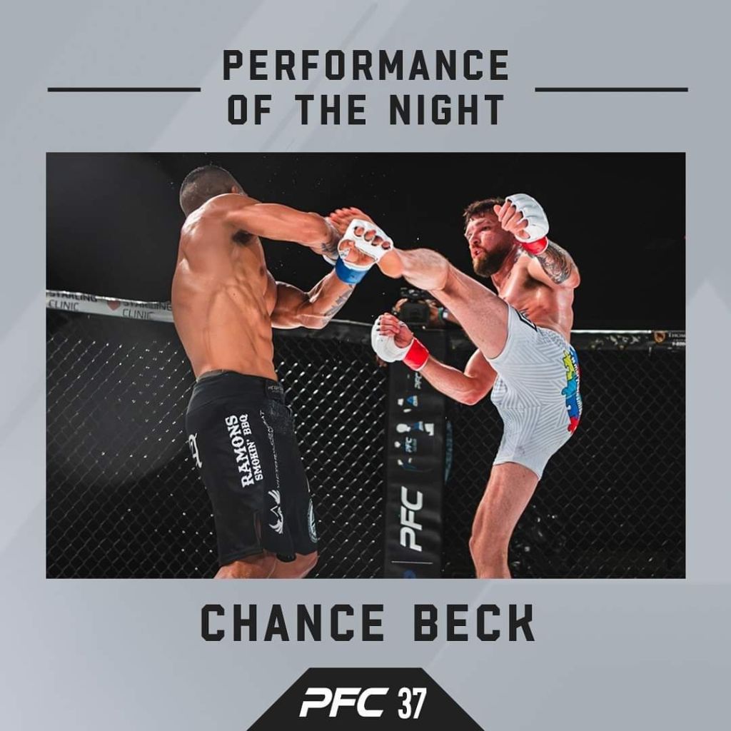 Anyone who knows Chance as a person and as a fighter knows he had a shot until the final bell! When the fourth round started he came out blazing by immediately putting the pressure on Luis and getting right in his face before landing what can only be described as a perfect sequence. We saw him throw a 1-2-1 combination into a beautiful left high kick that hurt Luis badly and put him down to the canvas. He did his best to try and recover but Chance gave him no opportunity to get back into it as the vicious ground and pound sealed the deal at twenty seconds into round four with your winner by KO/TKO and STILL PFC Featherweight champion Chance Beck! I was able to reach out to Chance for a few questions about his previous title-winning performance and what the future might hold next for the champ! Enjoy our full conversation below!