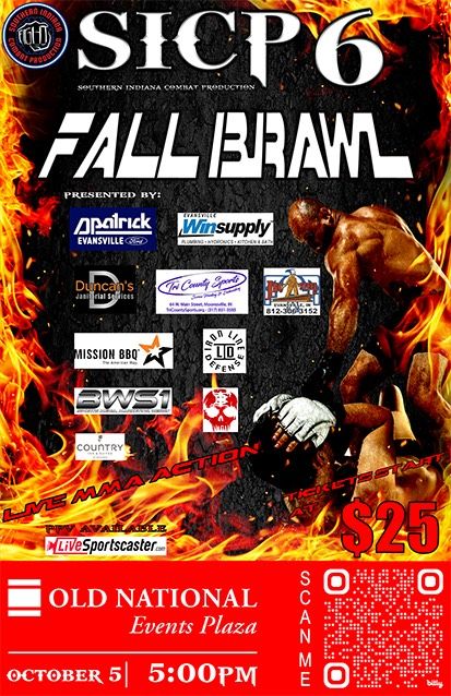 Southern Indiana Combat Productions is one of the fastest-growing MMA promotions in the Midwest! They will be coming back to the beautiful Evansville, Indiana, for their 6th event, FALL BRAWL! What better way to kick off the world-famous Fall Festival in Evansville than by holding the MMA event of the year the Saturday before?! SICP 6 goes down on October 5th at the Old National Events Plaza! This will be the follow-up event to SICP 5:Mayhem which took place May 4th of this year! In total, there were eleven total fights, which broke down into eight amateur bouts and three professional fights. We had seven total finishes, split between six KO/TKOS and one submission. The other four fights went the distance, but with how exciting they were, it went by in a flash. These quick finishes and all-out battles brought the total cage time to 76 minutes and 16 seconds for the night. One amateur champion retained his title, and one newly crowned amateur champion won a vacant title. The lone professional champion on the card successfully defended his title in the main event! I will be dropping all the information regarding PPV and ticket sales for the next event following the article; without further ado, here is your SICP 6:Fall Brawl Event preview below!