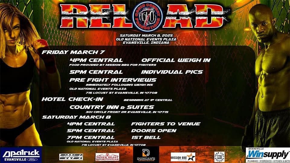 CCP 7: RELOAD presented by D-Patrick Ford Lincoln of Evansville! Live MMA action Saturday March 8 from the Old National Events Plaza in Evansville Indiana!